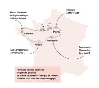 We have developed innovative formulas, without concession, in our small lab workshop in Paris and made a mini tour of France to select committed SMEs and talented to make our care.